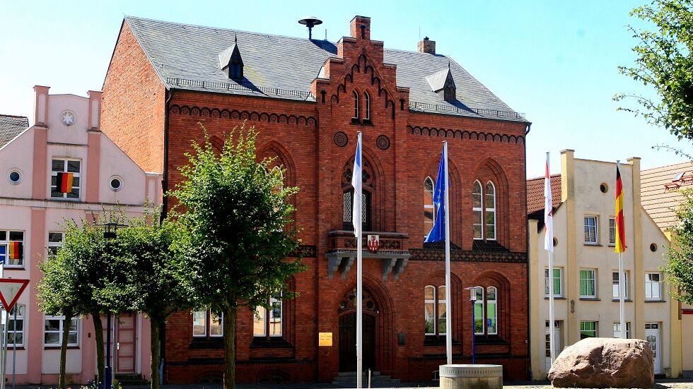 Das Rathaus in Tribsees stammt aus dem Jahr 1884.