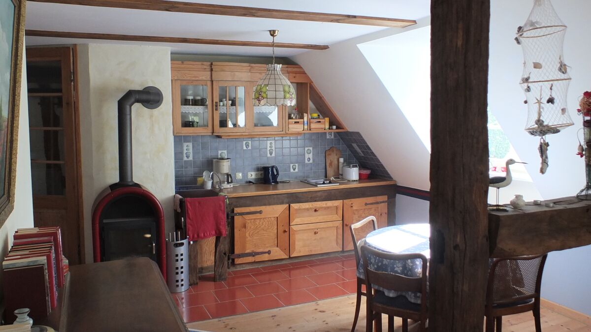 - Kuscheleck: Das Appartement befindet sich im Obergeschoss des Hauses, es besteht aus einem Wohn-/Schlafzimmer mit Doppelbett (1,40m breit), integrierter Teeküche, einem großen Duschbad sowie Flur mit Garderobe.