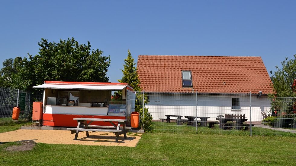 Baden im Baggersee direkt am Rasthof Buchholz auf einer sehr gepflegten Anlage mit Sitzmöglichkeiten, Spielflächen und einem Imbiss.