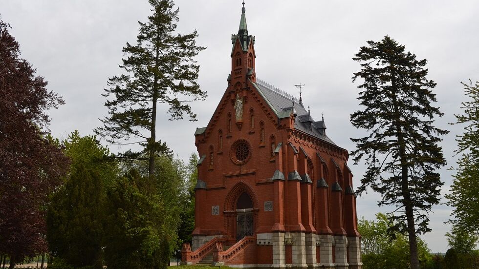 Im Jahr 1878 wurde auf dem Kirchenacker am Dorfausgang in Richtung Schlemmin der neue Friedhof in Semlow eingeweiht. Hier ließ Ulrich Graf Behr-Negendank auf einem eigens dafür erworbenen Morgen Land eine neue Kapelle errichten, die als Erbbegräbnisstätte der Familie und für die Trauergottesdienste der ganzen Gemeinde genutzt werden sollte. Als Vorlage dafür diente ihm das Mausoleum des Erzherzogs Johann von Österreich in Schönna bei Meran, das er auf einer Italienreise besucht hatte. Es entstand so 1880/81 unter Leitung des Berliner Architekten Walter ein für unsere Region einmaliger in Gestaltung und Ausführung sehr aufwendiger neugotischer Bau, in dessen Oberraum fortan die Trauerfeiern der Gemeinde stattfanden und in dessen Krypta darunter die Särge der gräflichen Familie aufgestellt wurden. Bedeutenstes Einrichtungsstück war ein gotischer geschnitzter Marienkrönungsaltar, der in einer Nische der Nordwand seinen Platz fand.