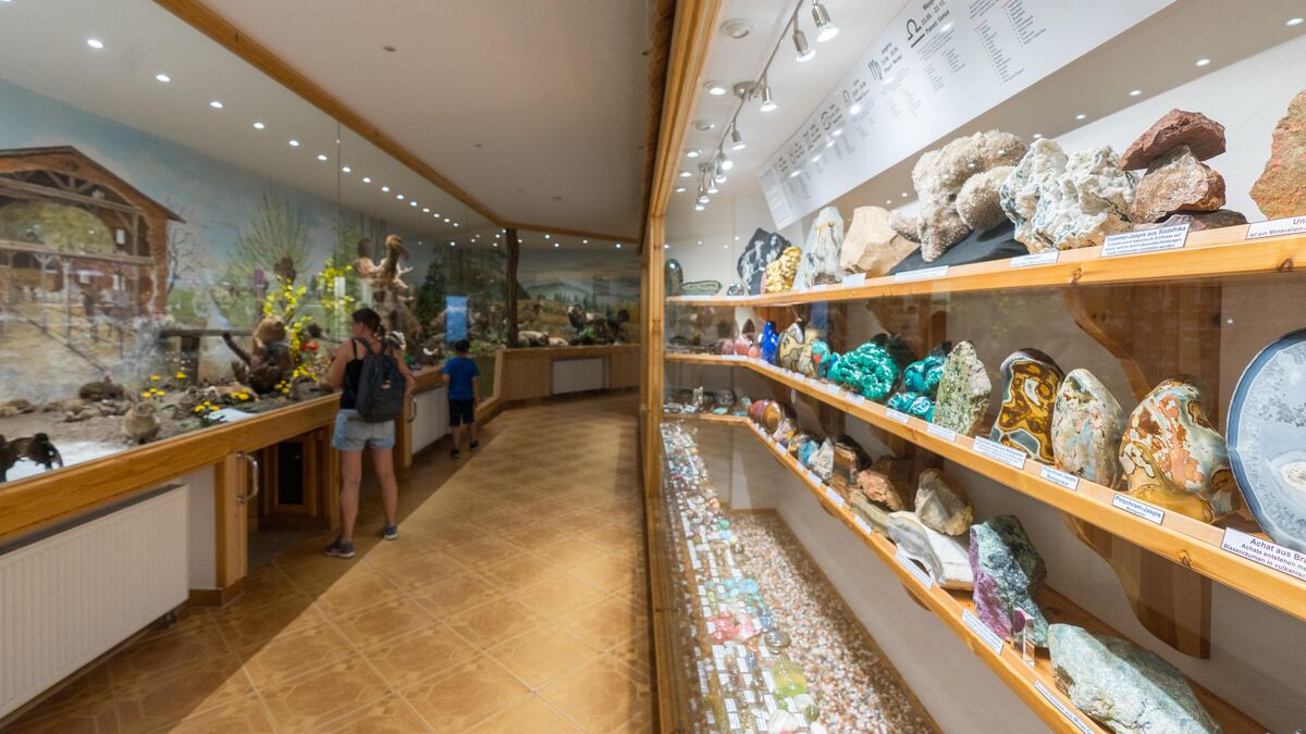 Glitzernde Mineralien und funkelnde Kristalle aus aller Welt werden Sie in der Naturschatzkammer staunen lassen. Genießen Sie die Farbenpracht der Edelsteine und entdecken Sie Bernsteine mit seltenen Einschlüssen, Fossilien, Pilze, besonders interesante Muschel- oder Schneckengehäuse. Schmetterlinge und die heimische Tierwelt werden Ihnen in einmaliger und besonders naturechter Präparation präsentiert. Erfreuen Sie sich am prächtigen Paradiesgarten und schauen Sie neugierig in die Kinderstube des Steinkauzes.
