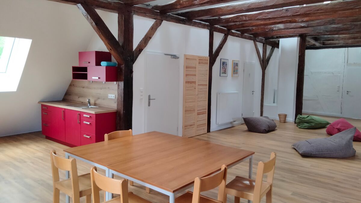 Das evangelische Pfarrhaus bietet ein Gruppenquartier für Kinder und Jugendlichen mit bis zu 24 Plätzen an. Geschlafen wird auf dem 2022 ausgebauten Dachboden.