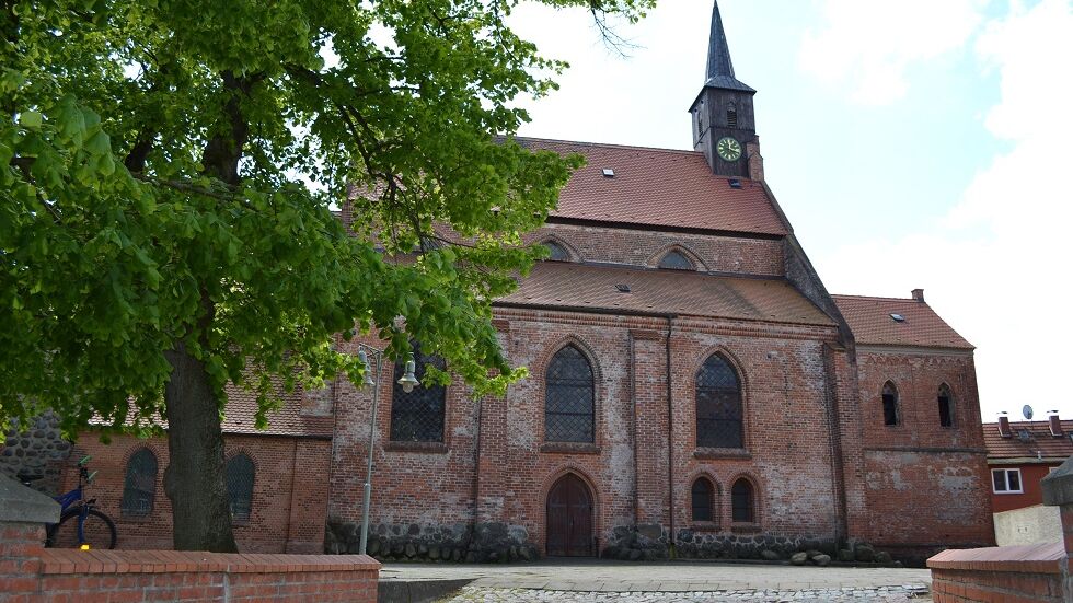 Die gotische St. Johanniskirche im historischen Stadtkern von Tessin wurde um 1350 geweiht.