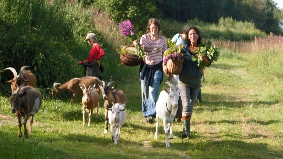 Eine geführte Wanderung mit Hofziegen, die frei mitlaufen - Kräuter sammeln, über deren Verwendung lernen und dabei entspannen