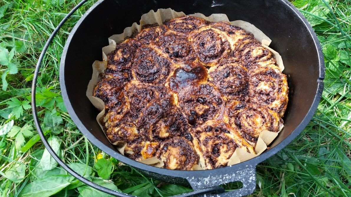 - Eierpfannkuchen im Deckel vom Dutch Oven mit Karamell-Topping